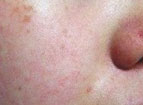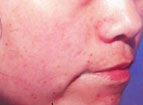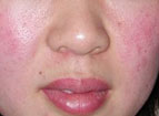 治疗前:徐女士两颊泛红,明显比一般人正常肤色红得多,红血丝集中分布在鼻翼两侧的面颊,呈树枝状病变