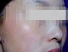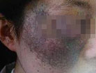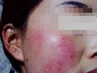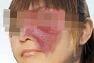 治疗前:王阿姨的脸上有一些鲜红色的胎记,已经影响到王阿姨的正常生活,在朋友的介绍下来到南昌中山皮肤病医院治疗。