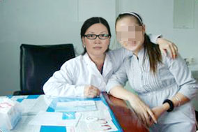 治疗前:脸上有一大块的红色胎记,非常显眼,致使唐小姐很少出门。